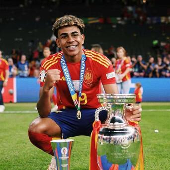 早恋!亚马尔小女友漂亮得让人眼馋,明星气质十足。 欧洲杯夺冠后,在颁